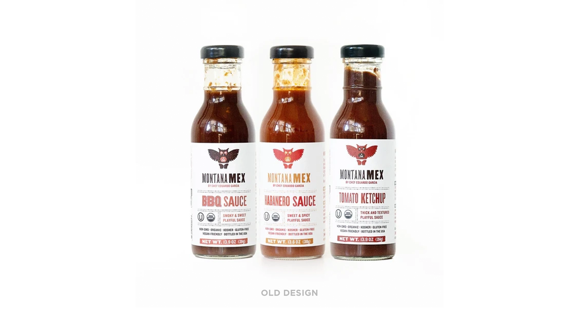 Although Montana Mex’s branding was fairly strong, the labels needed improvement. Among other things, they were far too white, which isn’t great for sauces — the bottles would become grimy almost immediately after being opened. The brief requested more color and an elevated feel.